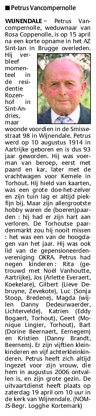 In de weekbode van 18 april 2008, stond onderstaand overlijdensbericht van Vader.